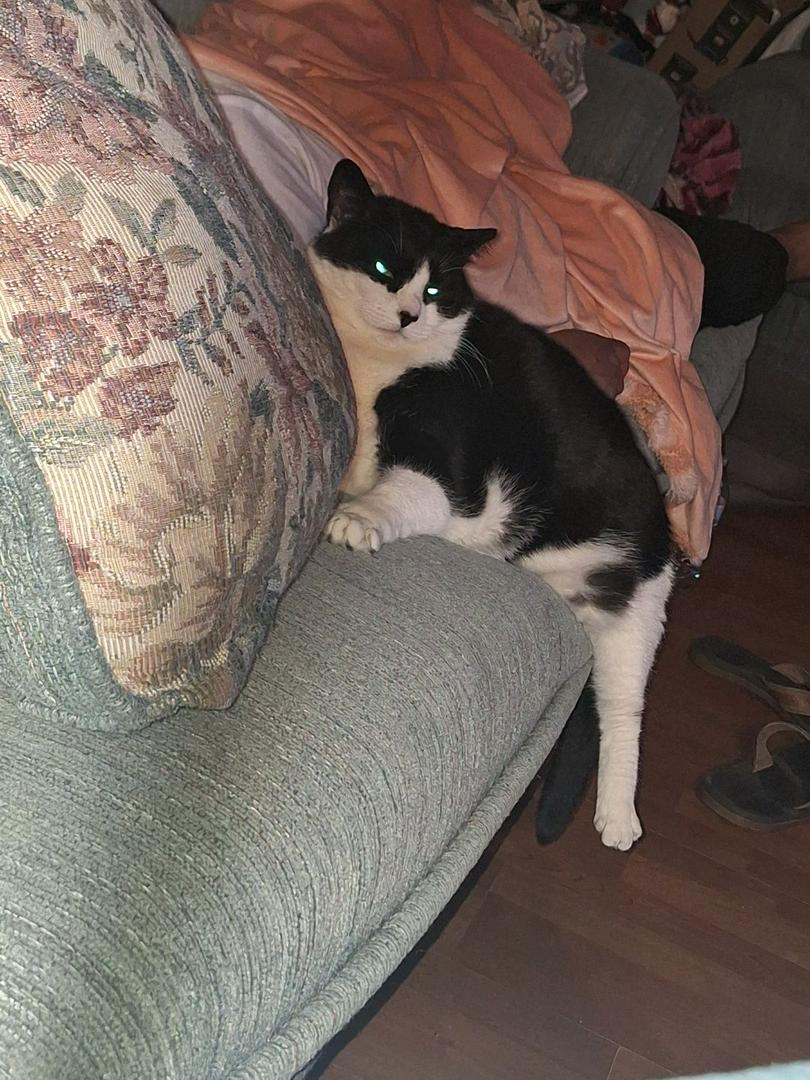 This is my cat Zoey.. she always loves laying with my husband if he falls asleep on a couch.. she tried squeezing in air with them she's got her leg hanging off.